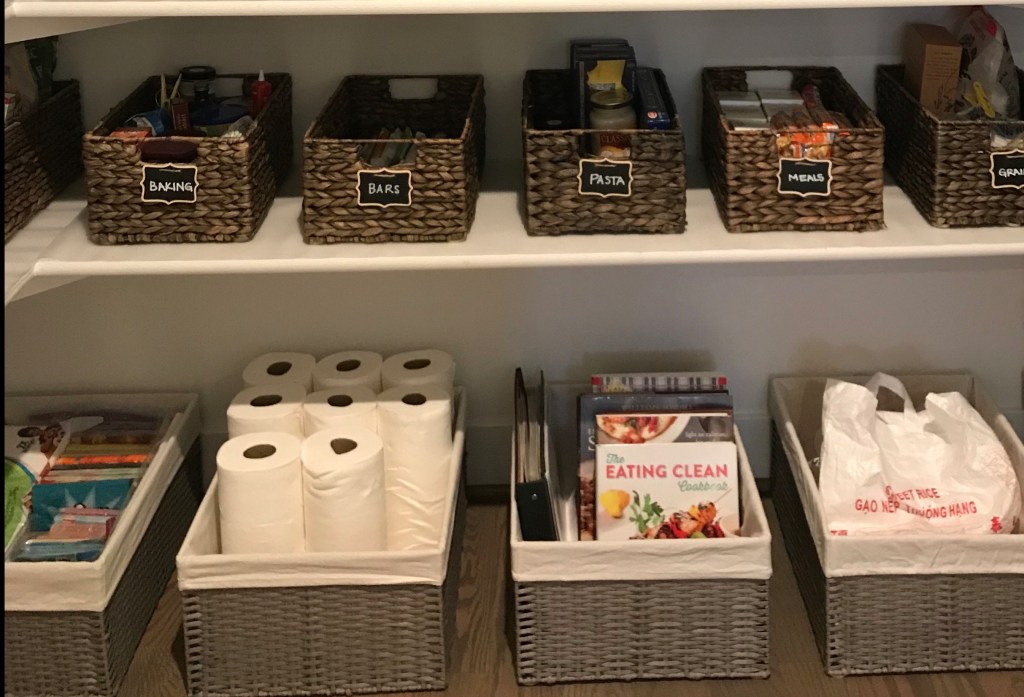 Baskets are arguably one of the best pantry organization ideas out there. Which is why you’ll see them more than once in this article. We love the use of baskets to keep paper products like paper towels and napkins neat and organized